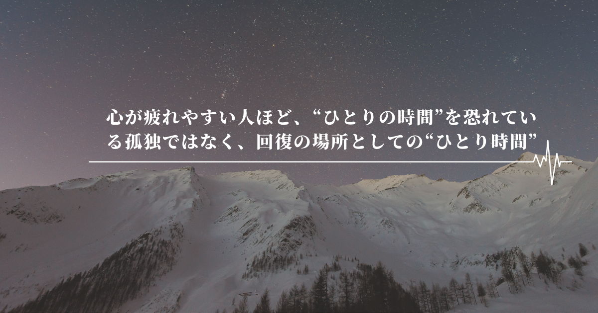 ひとりの時間は、心を回復させるために必要な“静かな治療”です。